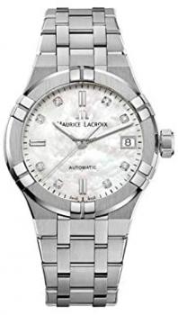 Maurice Lacroix is pleased to unveil a new AIKON Automatic, perfectly fulfilling the requirements of today’s modern women. Case : Stainless Steel & Strap : Stainless steel Water resistance to 200m 35mm Dial White Mother-of-Pearl Dial Rhodium plated, white SLN indexes Set with diamonds Rhodium plated, white SLN hands