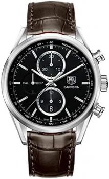 - WITH MANUFACTURER SERIAL NUMBERS - Black Dial- Chronograph Feature- Self Winding Automatic Movement- Exhibition Back Case- Guaranteed Authentic- Certificate of Authenticity- Scratch Resistant Sapphire Crystal- Polished Steel Case- Brown Leather Strap with Alligator Pattern- Manufacturer Box & Manual- 100 Meters / 330 Feet Water Resistant- 41mm = 1 1/2" Case, 7" Adjustable Strap- Deployment Buckle- Luminescent Hands & MarkersAlso Known As Model # CAR2110 FC6291 / CAR2110FC6291