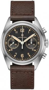 Details of Hamilton Watch Khaki Aviation Pilot Pioneer Mechanical Chrono | Swiss Made | 40mm Stainless Steel Case | Black Dial Analog Watch | Brown Leather Strap (Model: H76409530)