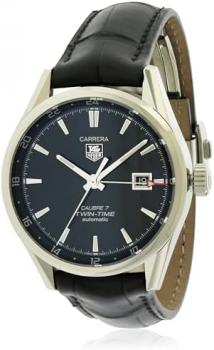 Stainless steel case.Leather strap.Black dial.Automatic movement.Date.Sapphire crystal.Water resistant 100 meters.Case 41mm.Specifications of Tag Heuer Carrera Twin Time Automatic Mens Watch WAR2010FC6266
