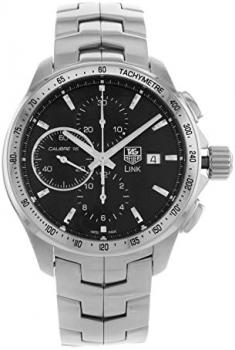 TAG Heuer Men's Watch|Link Automatic|CAT2010.BA0952- Men's: This distinctive TAG Heuer Link men's watch features the legendary Calibre 16 automatic movement. The fixed bezel with tachymeter scale, black dial with a date window, and three chronograph subdials are protected by a curved, scratch-resistant sapphire crystal treated with an anti-reflective coating. The stainless steel S-link bracelet is fastened with a folding deployment clasp. The tough stainless steel case has an alternating polished and fine-brushed surface. The screw-in crown and case back are favored by divers. This sport timepiece is water-resistant to 200 meters.