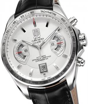 Brand: TAG Heuer Series: Grand Carrera (Male) Name: Grand Carrera Steel White Dial Black Leather Model number: CAV511b.fc6225 Dial: Silver Opaline Bracelet: Black Alligator leather Clasp: Deployant Clasp Crystal: Sapphire Movement: Automatic Dimensions: 43 mm Water Resistant: 100 m/330 ft ID: 003539